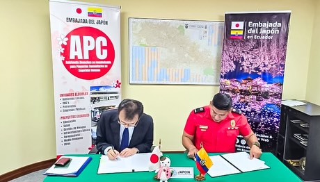 Desde el Benemérito Cuerpo de Bomberos del cantón Pedro Carbo expresamos nuestro más sincero agradecimiento a la Embajada de Japón, por hacer posible la firma de este importante convenio que permitirá la donación de una motobomba totalmente equipada.